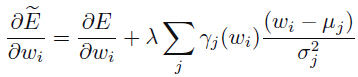 的导师。这可以通过使用标准的BP方法计算,因为是上面的误差函数是不同项的和,所以可以针对每个独立的训练样本,先求出它们各自的导数,然后加起来就行。因为我们需要处理的是混合分布,所以将混合系数