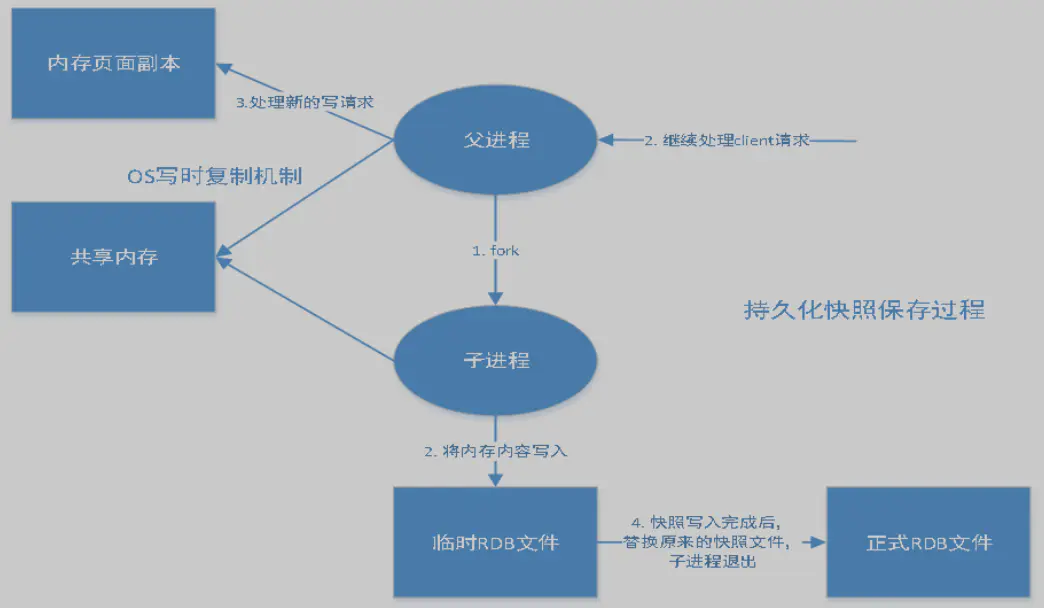 Master 接到命令,启动后台的存盘进程,同时收集所有接收到的用于修改数据集命令,在后台进程执行