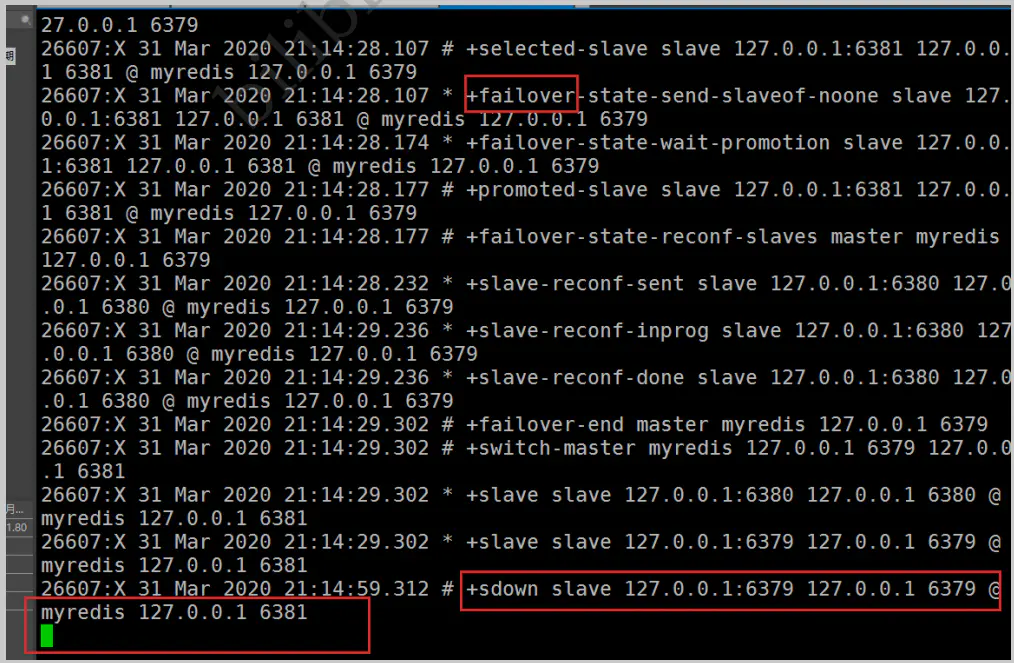 sentinel monitor myredis 127 .0.0.1 6379 1