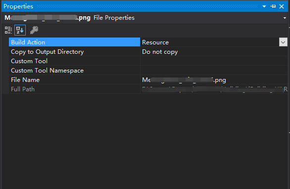 当Build Action属性设置为Resource时,生成的时候资源将添加到程序集中。每次重新编译时, 编译器会将图片文件导入到资源文件中。