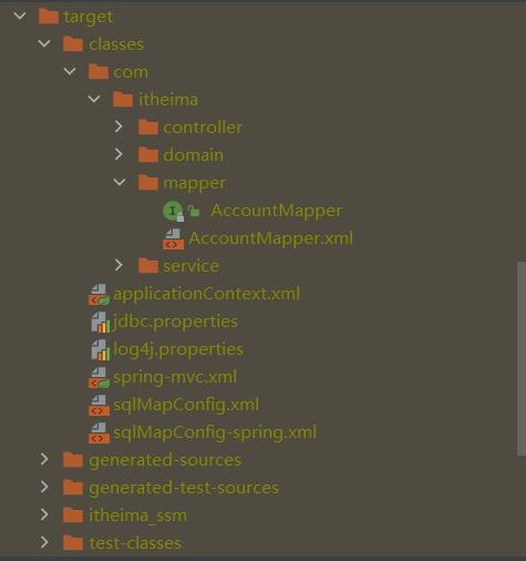 编译后这两个文件会在target-->classes-->mapper下。这时其实映射接口和映射文件已经在同一目录下。此时就可以不用在sqlSeesionFactoryBean中配置mapperLocation属性。