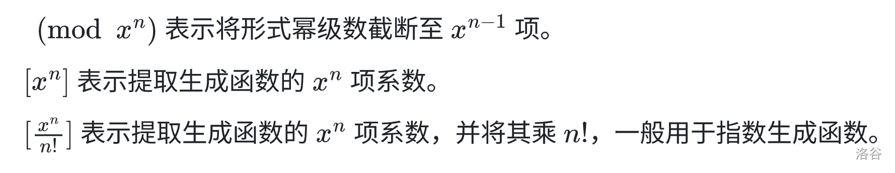 生成函数是一个描述序列的工具,可以帮助我们从一个更为机械化的⻆度观察序列的性质