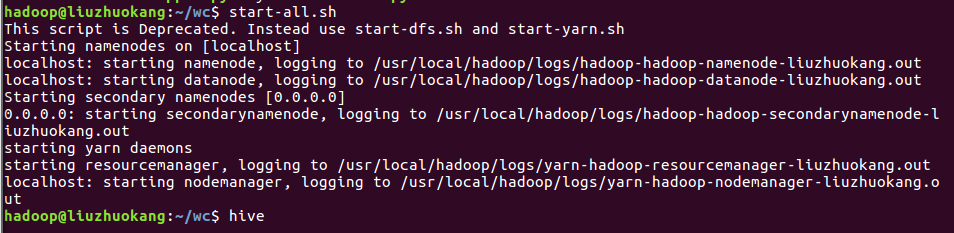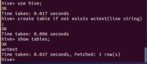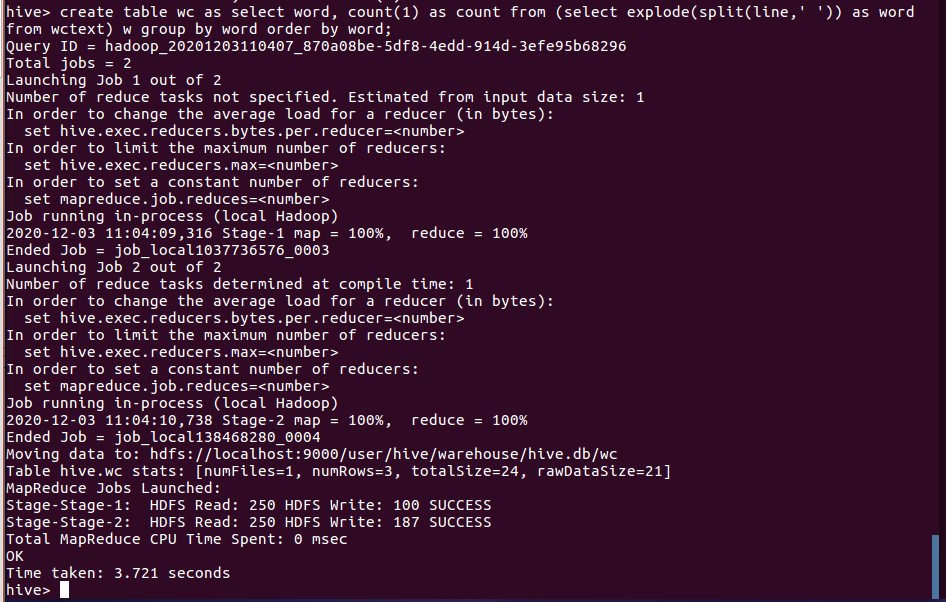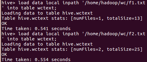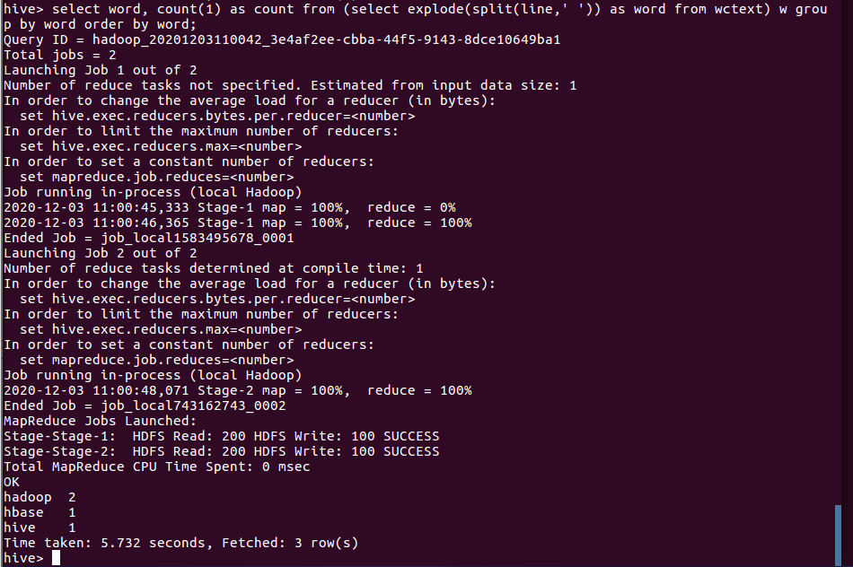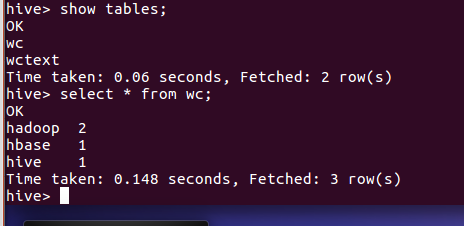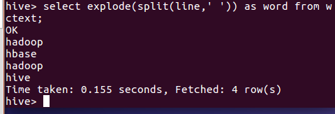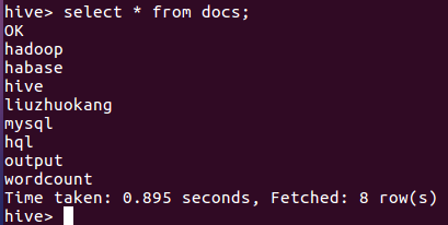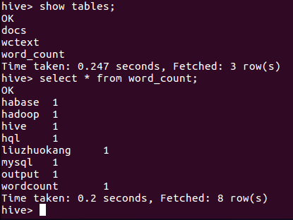5.hql语句进行词频统计交将结果保存到结果表中。