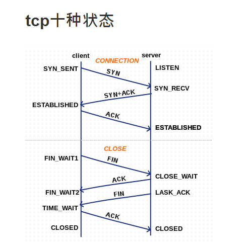第二次挥手:服务端收到这个FIN,返回一个确认,询问客户端是否关闭?服务端就进入了CLOSE-WAIN(关闭等待)状态。客户端收到服务器的确认请求后,客户端进入FIN-WAIT-2