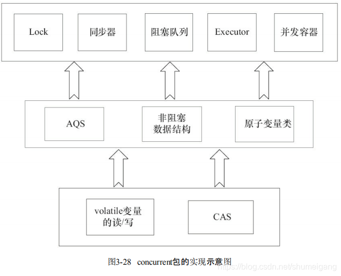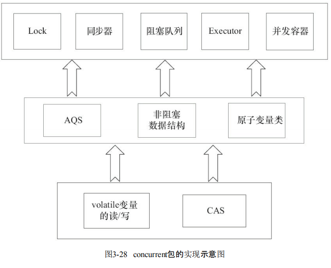 4)A线程用CAS更新个volatile变量,随后B线程读这个volatile变量。concurrent包的实现示意图:
