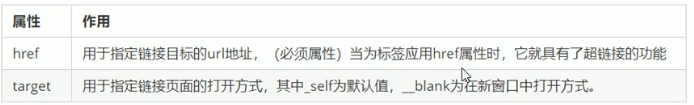 <a href = " 跳转目标" target = “ 目标窗口的弹出方式 ”>文本或图像</a>
