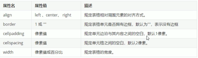 (3)表格属性 (不常用) <table align=" center " cellspacing = "0">
