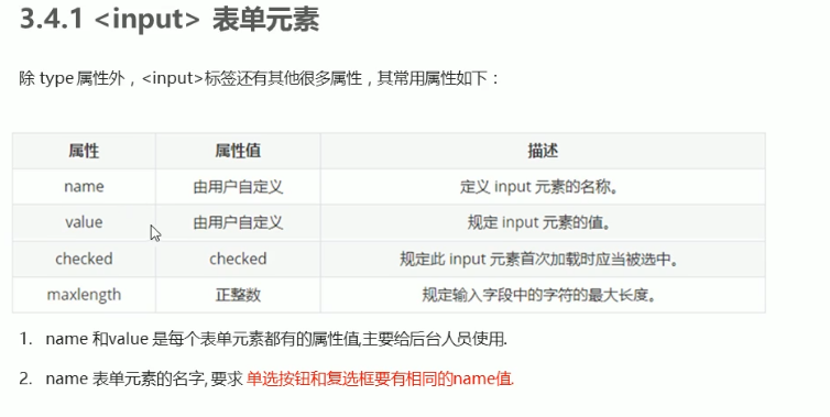 1、输入< input type=“text” name =“ ” id>