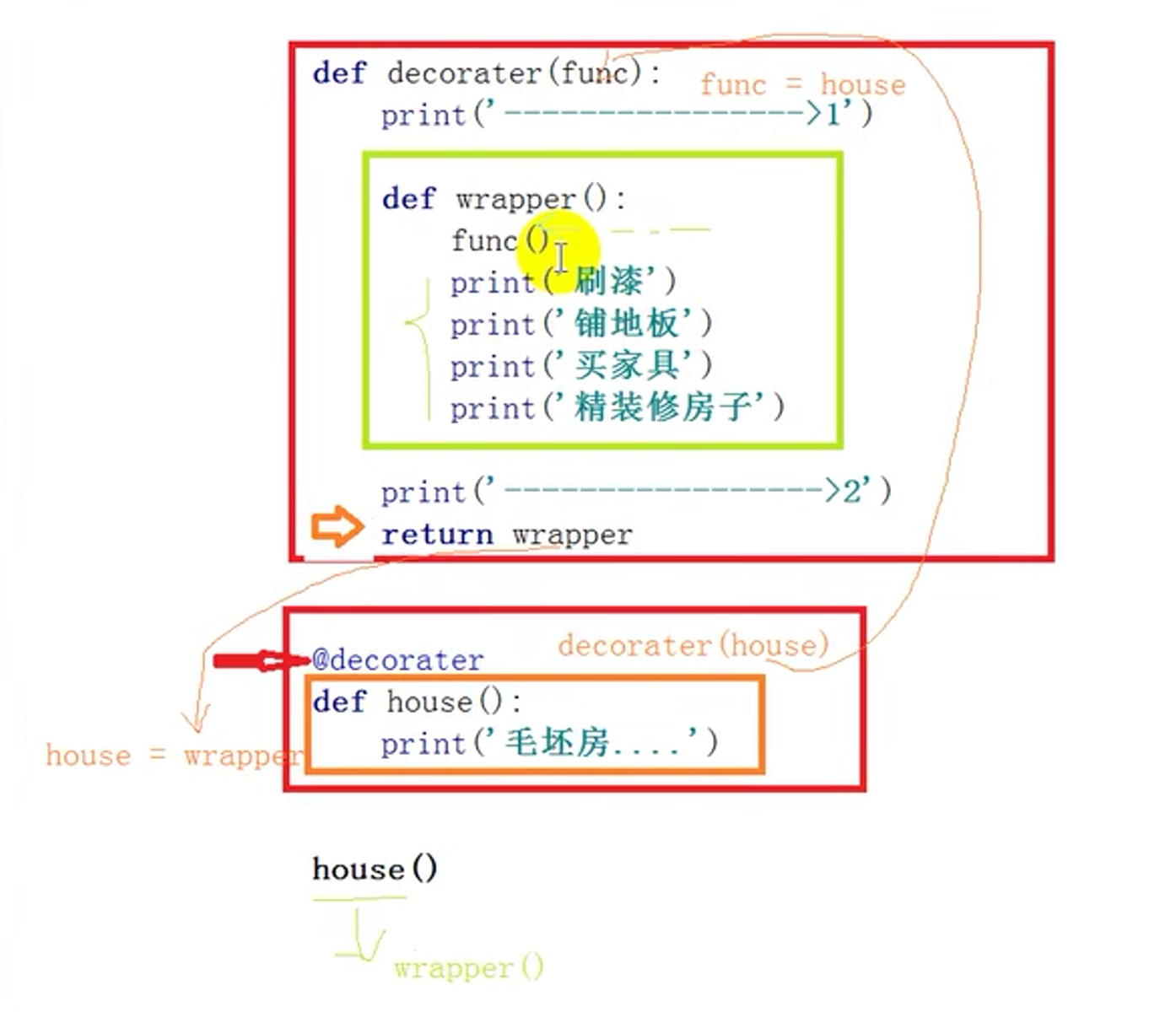 func() # 这是调用func所以相当与调用house所以先显示毛坯房