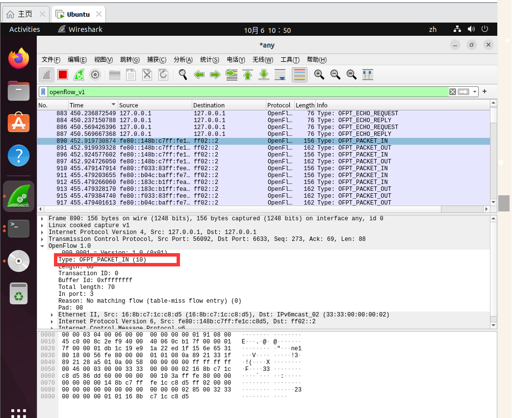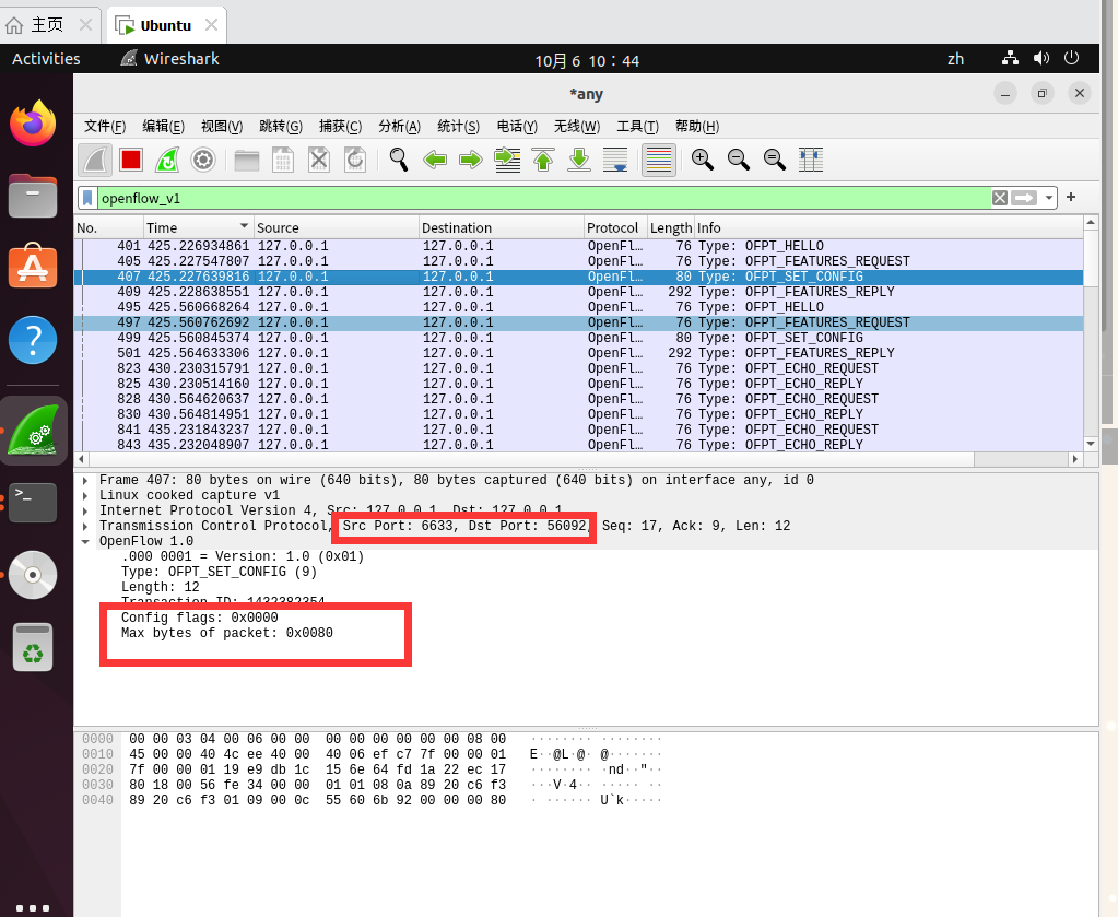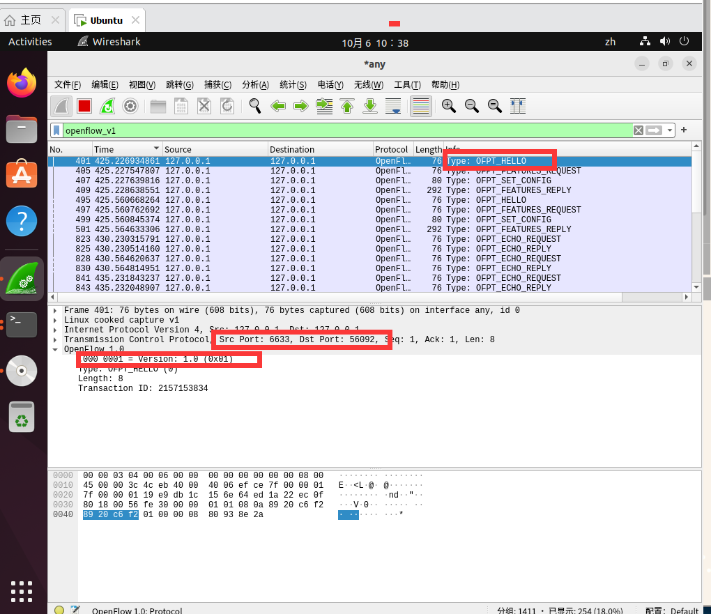 将抓包基础要求第2步的抓包结果对照OpenFlow源码,了解OpenFlow主要消息类型对应的数据结构定义。