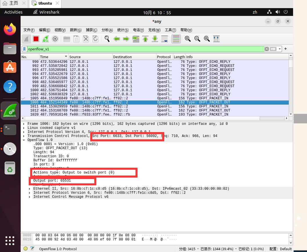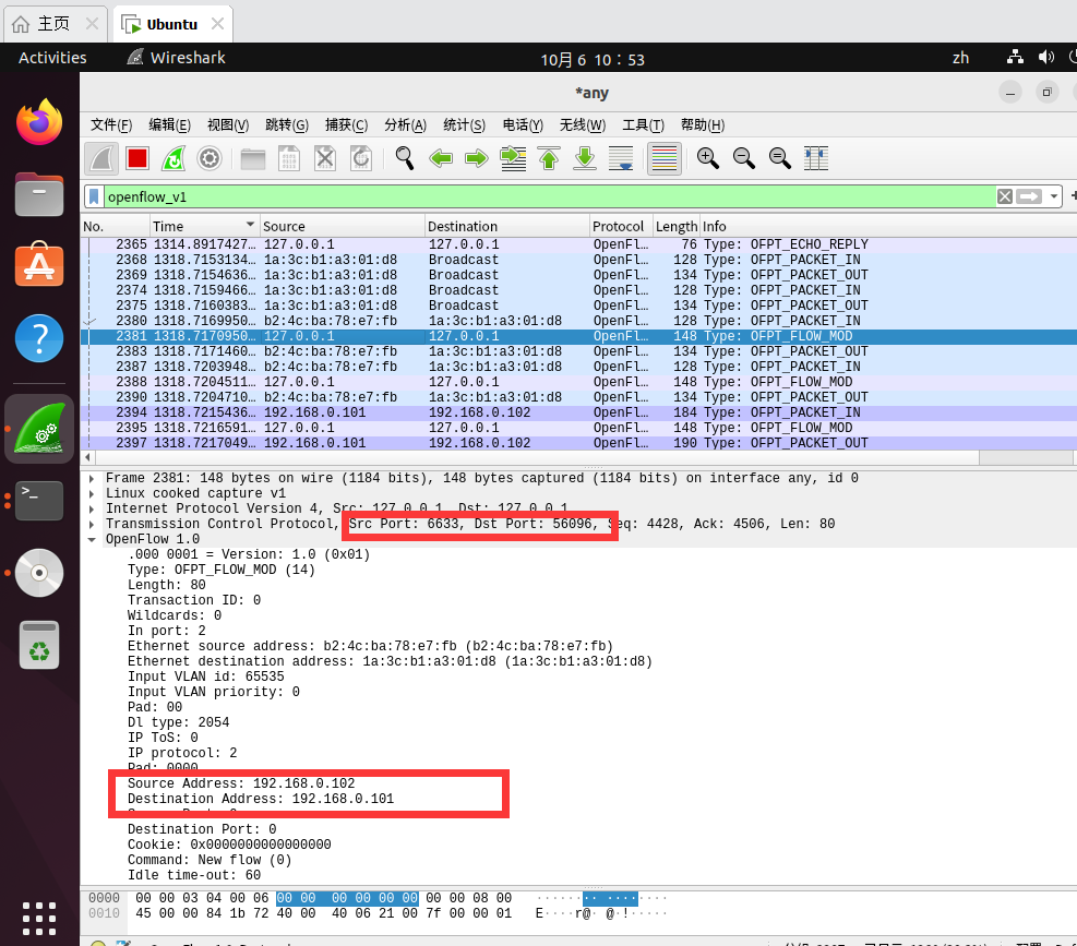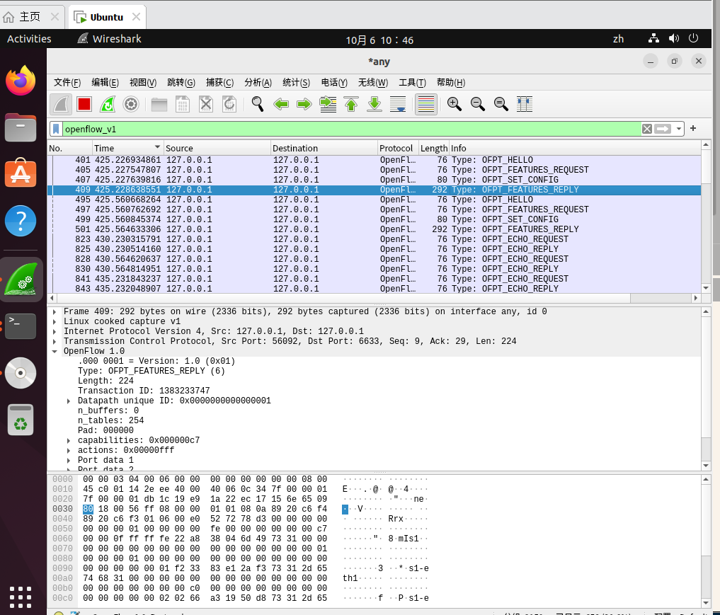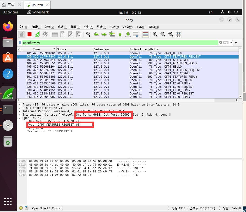 个人感想:通过这次实验,我对openflow协议数据交互过程有了一定的了解,同时对抓包操作也更加熟悉了。