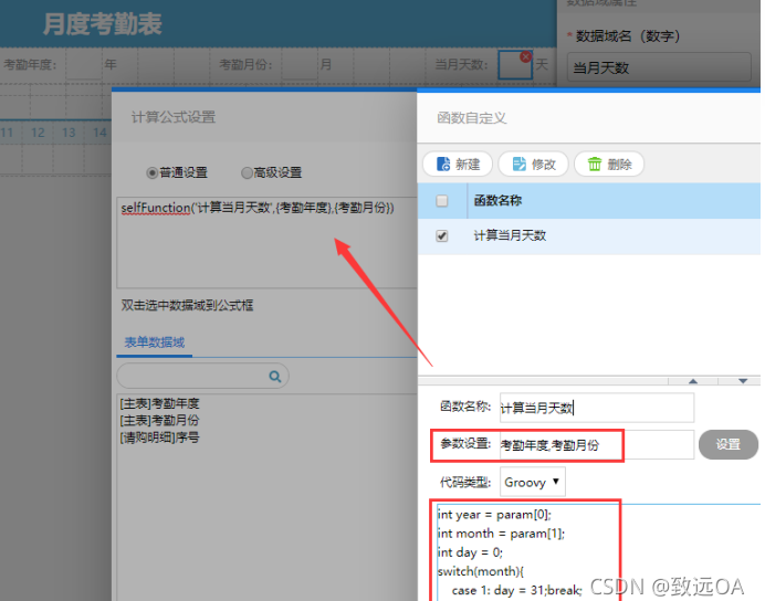 以上就是致远OA表单实时算出当前月份的天数的分享,脚本用的语言是groovy 。