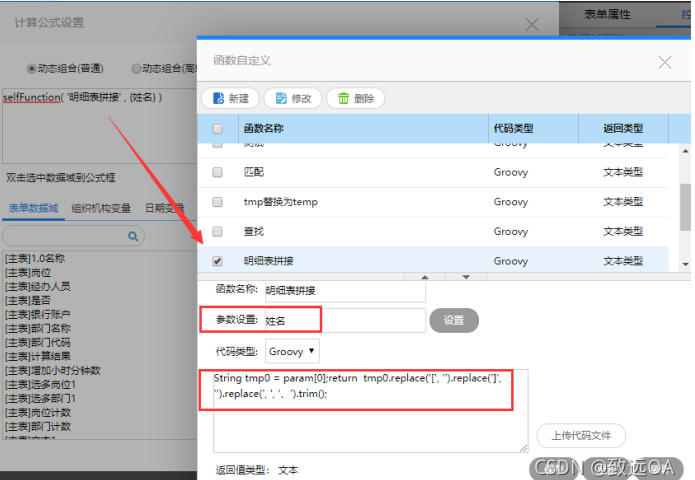 致远OA表单自定义函数(明细表字符串拼接)