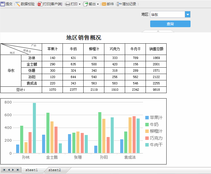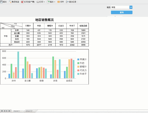 点击填报预览,点击查询按钮后,再切换sheet,即可看到上面的效果。