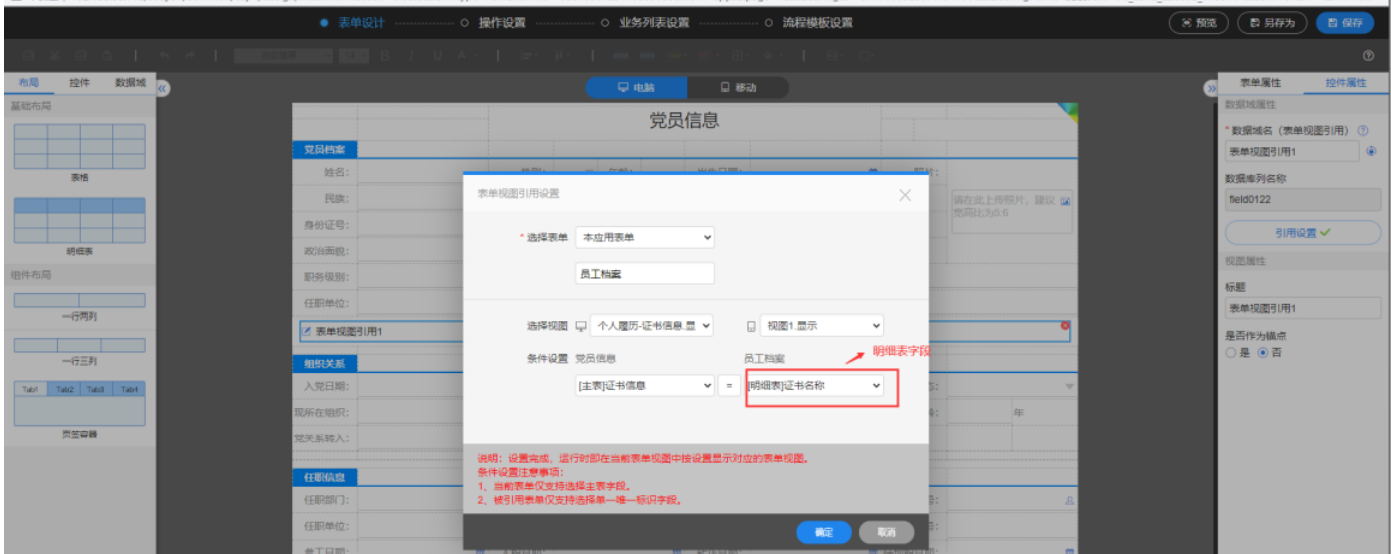 1、被引用表单必须是无流程表单,需引入表单支持流程表单或者无流程表单