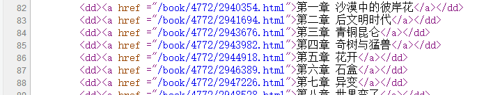 由82开始到1130结束,1130-82+1=1049,刚刚好获取到了每个章节特有的url链接,后面使用的时候只需要用字符串+就构造好我们需要的各个章节的url链接了。
