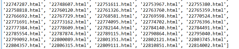 1 def Get_Catalog(ulist,url): 2 3 html = getHTML_Text(url) 4 5 for i in re.findall(r'\d+.html',html): 6 7 ulist.append(i)