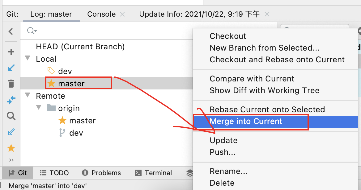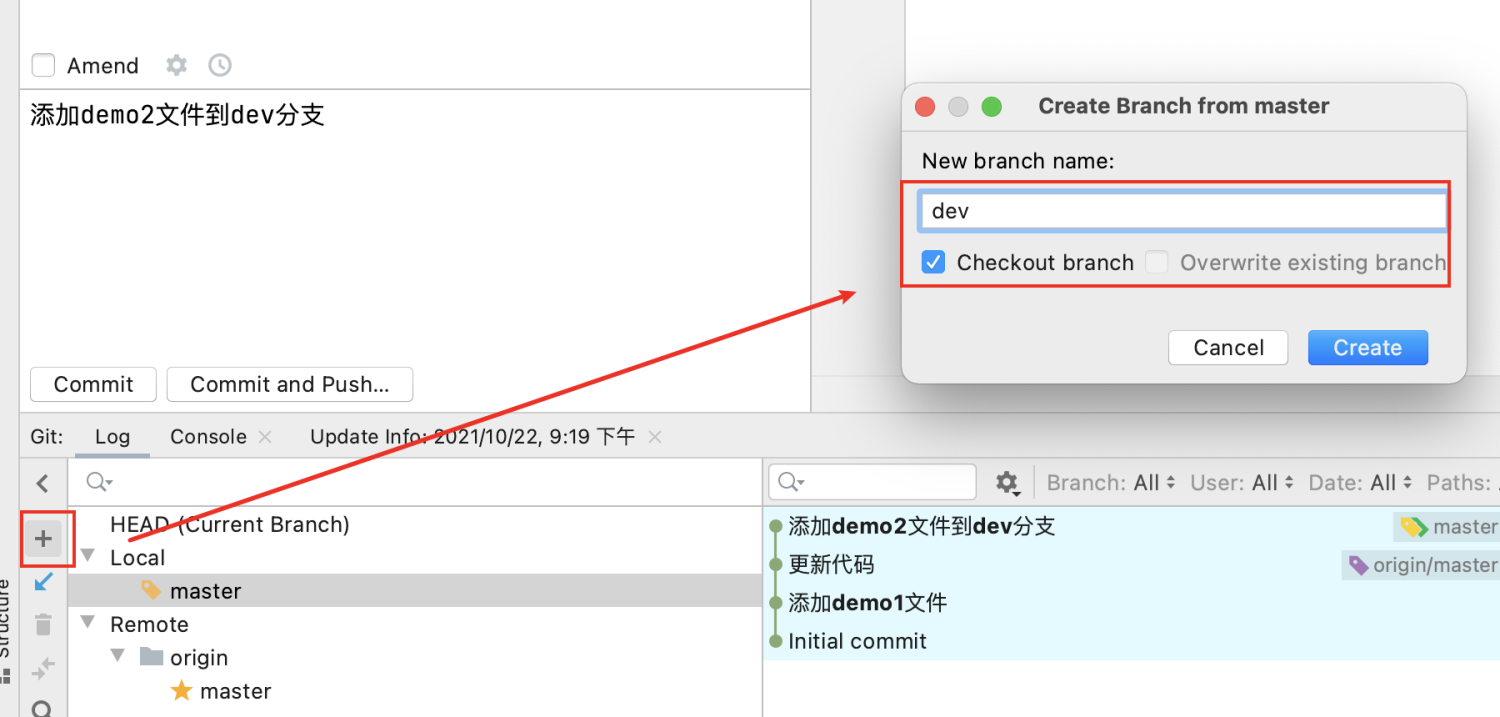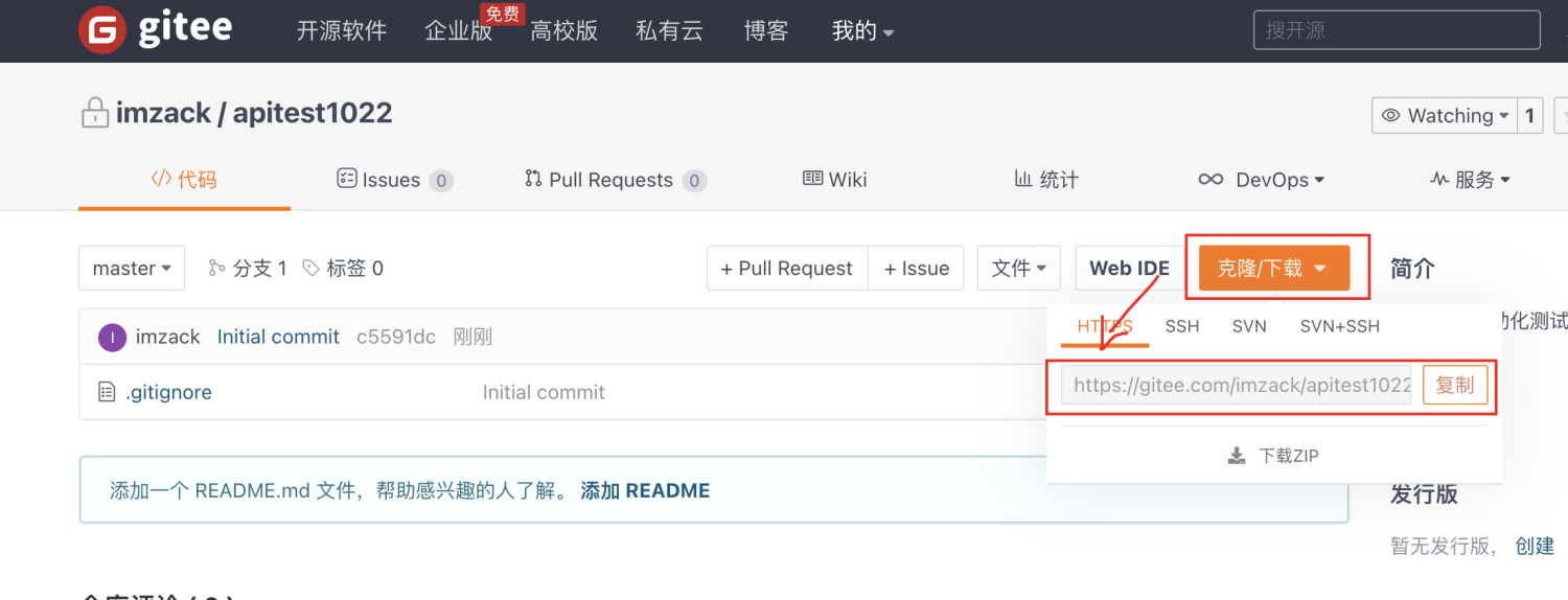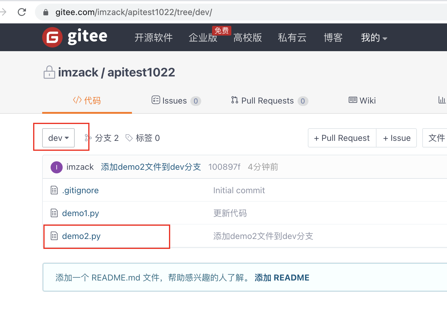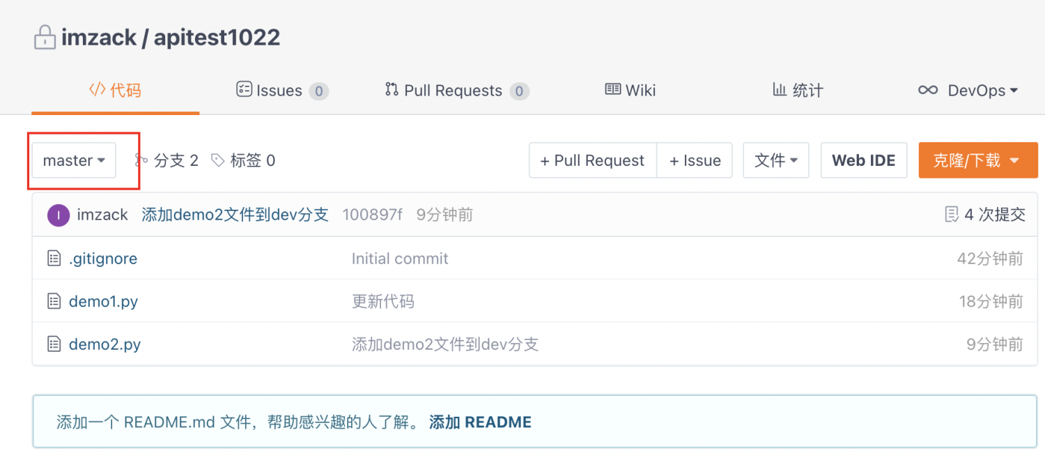 1,默认代码都是在Master 主分支上进行的操作。也可以创建其他分支,比如创建 【dev】分支。