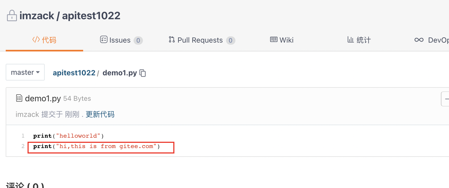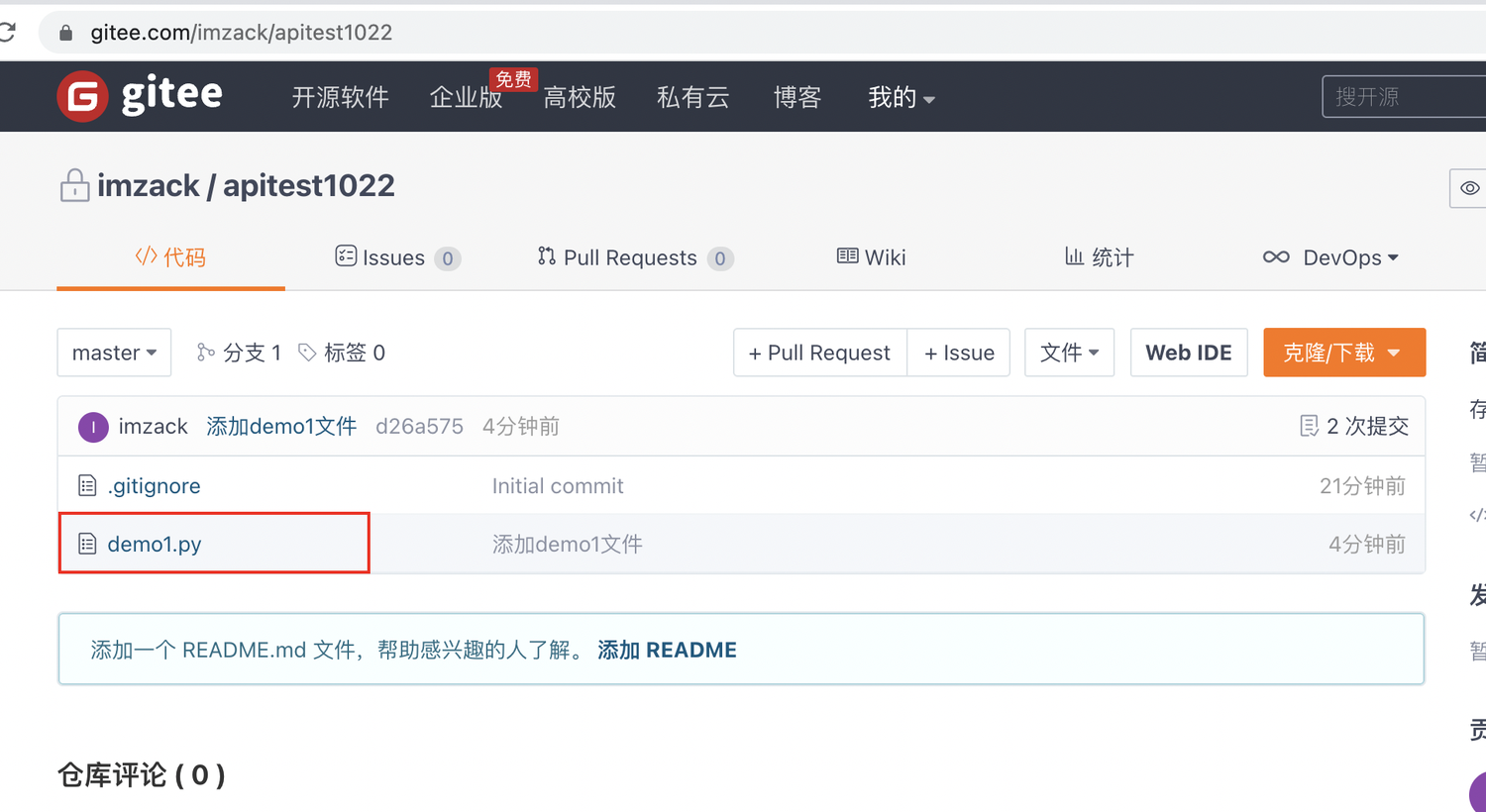 6,提交成功之后,刷新gitee远程仓库地址,可以看到刚才提交的代