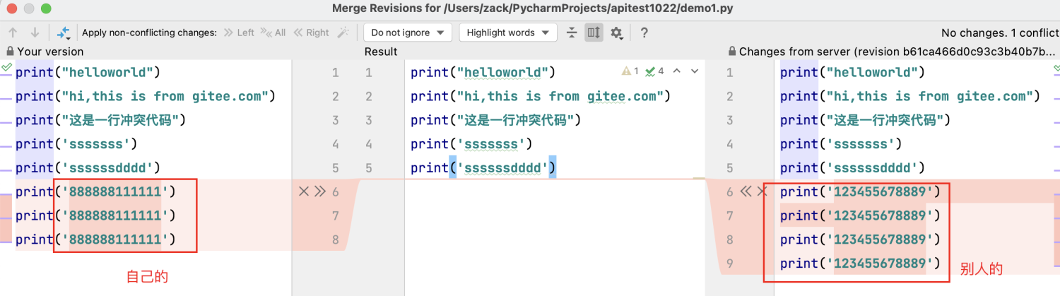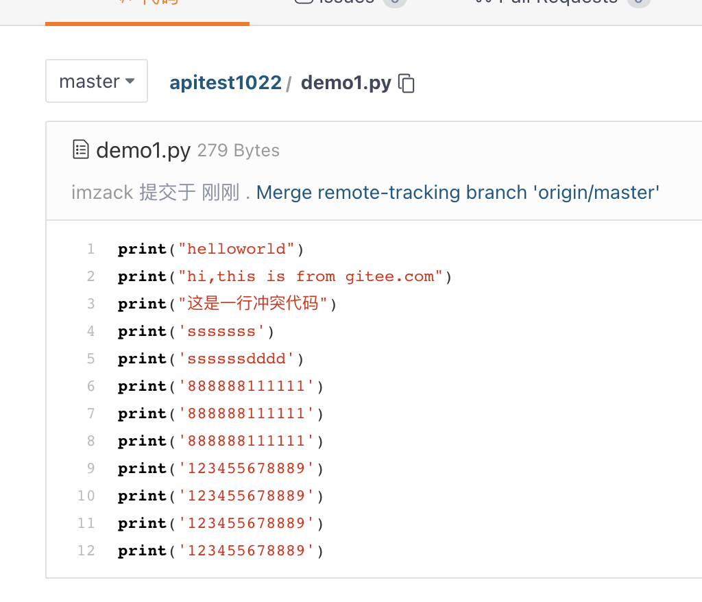 上面的操作是提交本地代码到远程服务器。在公司中一个仓库是由多人维护,如果别人也提交了一些代码。下面演示如何将别人写的代码同步到自己本地。