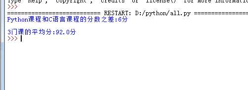 print("Python课程和C语言课程的分数之差:"+str(sub)+"分\n")