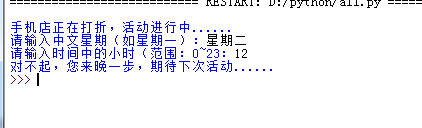print("恭喜您,获得了折扣活动参与资格,快快选购吧!")