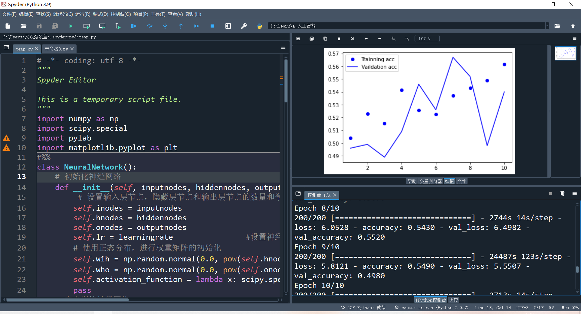 # -*- coding: utf-8 -*- """ Created on Mon May 9 17:27:05 2022 @author: 又双叒叕莹 """ import tensorflow as tf from tensorflow import keras from tensorflow.keras import layers, regularizers import numpy as np import os import cv2 import matplotlib.pyplot as plt os.environ["CUDA_VISIBLE_DEVICES"] = "1" resize = 224 path =r"D:\BaiduNetdiskDownload\seven\train" def load_data(): imgs = os.listdir(path) num = len(imgs) train_data = np.empty((5000, resize, resize, 3), dtype="int32") train_label = np.empty((5000, ), dtype="int32") test_data = np.empty((5000, resize, resize, 3), dtype="int32") test_label = np.empty((5000, ), dtype="int32") for i in range(5000): if i % 2: train_data[i] = cv2.resize(cv2.imread(path+'/'+ 'dog.' + str(i) + '.jpg'), (resize, resize)) train_label[i] = 1 else: train_data[i] = cv2.resize(cv2.imread(path+'/' + 'cat.' + str(i) + '.jpg'), (resize, resize)) train_label[i] = 0 for i in range(5000, 10000): if i % 2: test_data[i-5000] = cv2.resize(cv2.imread(path+'/' + 'dog.' + str(i) + '.jpg'), (resize, resize)) test_label[i-5000] = 1 else: test_data[i-5000] = cv2.resize(cv2.imread(path+'/' + 'cat.' + str(i) + '.jpg'), (resize, resize)) test_label[i-5000] = 0 return train_data, train_label, test_data, test_label def vgg16(): weight_decay = 0.0005 nb_epoch = 100 batch_size = 32 # layer1 model = keras.Sequential() model.add(layers.Conv2D(64, (3, 3), padding='same', input_shape=(224, 224, 3), kernel_regularizer=regularizers.l2(weight_decay))) model.add(layers.Activation('relu')) model.add(layers.BatchNormalization()) model.add(layers.Dropout(0.3)) # layer2 model.add(layers.Conv2D(64, (3, 3), padding='same', kernel_regularizer=regularizers.l2(weight_decay))) model.add(layers.Activation('relu')) model.add(layers.BatchNormalization()) model.add(layers.MaxPooling2D(pool_size=(2, 2))) # layer3 model.add(layers.Conv2D(128, (3, 3), padding='same', kernel_regularizer=regularizers.l2(weight_decay))) model.add(layers.Activation('relu')) model.add(layers.BatchNormalization()) model.add(layers.Dropout(0.4)) # layer4 model.add(layers.Conv2D(128, (3, 3), padding='same', kernel_regularizer=regularizers.l2(weight_decay))) model.add(layers.Activation('relu')) model.add(layers.BatchNormalization()) model.add(layers.MaxPooling2D(pool_size=(2, 2))) # layer5 model.add(layers.Conv2D(256, (3, 3), padding='same', kernel_regularizer=regularizers.l2(weight_decay))) model.add(layers.Activation('relu')) model.add(layers.BatchNormalization()) model.add(layers.Dropout(0.4)) # layer6 model.add(layers.Conv2D(256, (3, 3), padding='same', kernel_regularizer=regularizers.l2(weight_decay))) model.add(layers.Activation('relu')) model.add(layers.BatchNormalization()) model.add(layers.Dropout(0.4)) # layer7 model.add(layers.Conv2D(256, (3, 3), padding='same', kernel_regularizer=regularizers.l2(weight_decay))) model.add(layers.Activation('relu')) model.add(layers.BatchNormalization()) model.add(layers.MaxPooling2D(pool_size=(2, 2))) # layer8 model.add(layers.Conv2D(512, (3, 3), padding='same', kernel_regularizer=regularizers.l2(weight_decay))) model.add(layers.Activation('relu')) model.add(layers.BatchNormalization()) model.add(layers.Dropout(0.4)) # layer9 model.add(layers.Conv2D(512, (3, 3), padding='same', kernel_regularizer=regularizers.l2(weight_decay))) model.add(layers.Activation('relu')) model.add(layers.BatchNormalization()) model.add(layers.Dropout(0.4)) # layer10 model.add(layers.Conv2D(512, (3, 3), padding='same', kernel_regularizer=regularizers.l2(weight_decay))) model.add(layers.Activation('relu')) model.add(layers.BatchNormalization()) model.add(layers.MaxPooling2D(pool_size=(2, 2))) # layer11 model.add(layers.Conv2D(512, (3, 3), padding='same', kernel_regularizer=regularizers.l2(weight_decay))) model.add(layers.Activation('relu')) model.add(layers.BatchNormalization()) model.add(layers.Dropout(0.4)) # layer12 model.add(layers.Conv2D(512, (3, 3), padding='same', kernel_regularizer=regularizers.l2(weight_decay))) model.add(layers.Activation('relu')) model.add(layers.BatchNormalization()) model.add(layers.Dropout(0.4)) # layer13 model.add(layers.Conv2D(512, (3, 3), padding='same', kernel_regularizer=regularizers.l2(weight_decay))) model.add(layers.Activation('relu')) model.add(layers.BatchNormalization()) model.add(layers.MaxPooling2D(pool_size=(2, 2))) model.add(layers.Dropout(0.5)) # layer14 model.add(layers.Flatten()) model.add(layers.Dense(512, kernel_regularizer=regularizers.l2(weight_decay))) model.add(layers.Activation('relu')) model.add(layers.BatchNormalization()) # layer15 model.add(layers.Dense(512, kernel_regularizer=regularizers.l2(weight_decay))) model.add(layers.Activation('relu')) model.add(layers.BatchNormalization()) # layer16 model.add(layers.Dropout(0.5)) model.add(layers.Dense(2)) model.add(layers.Activation('softmax')) return model #if __name__ == '__main__': train_data, train_label, test_data, test_label = load_data() train_data = train_data.astype('float32') test_data = test_data.astype('float32') train_label = keras.utils.to_categorical(train_label, 2) test_label = keras.utils.to_categorical(test_label, 2) #定义训练方法,超参数设置 model = vgg16() sgd = tf.keras.optimizers.SGD(lr=0.01, decay=1e-6, momentum=0.9, nesterov=True) #设置优化器为SGD model.compile(loss='categorical_crossentropy', optimizer=