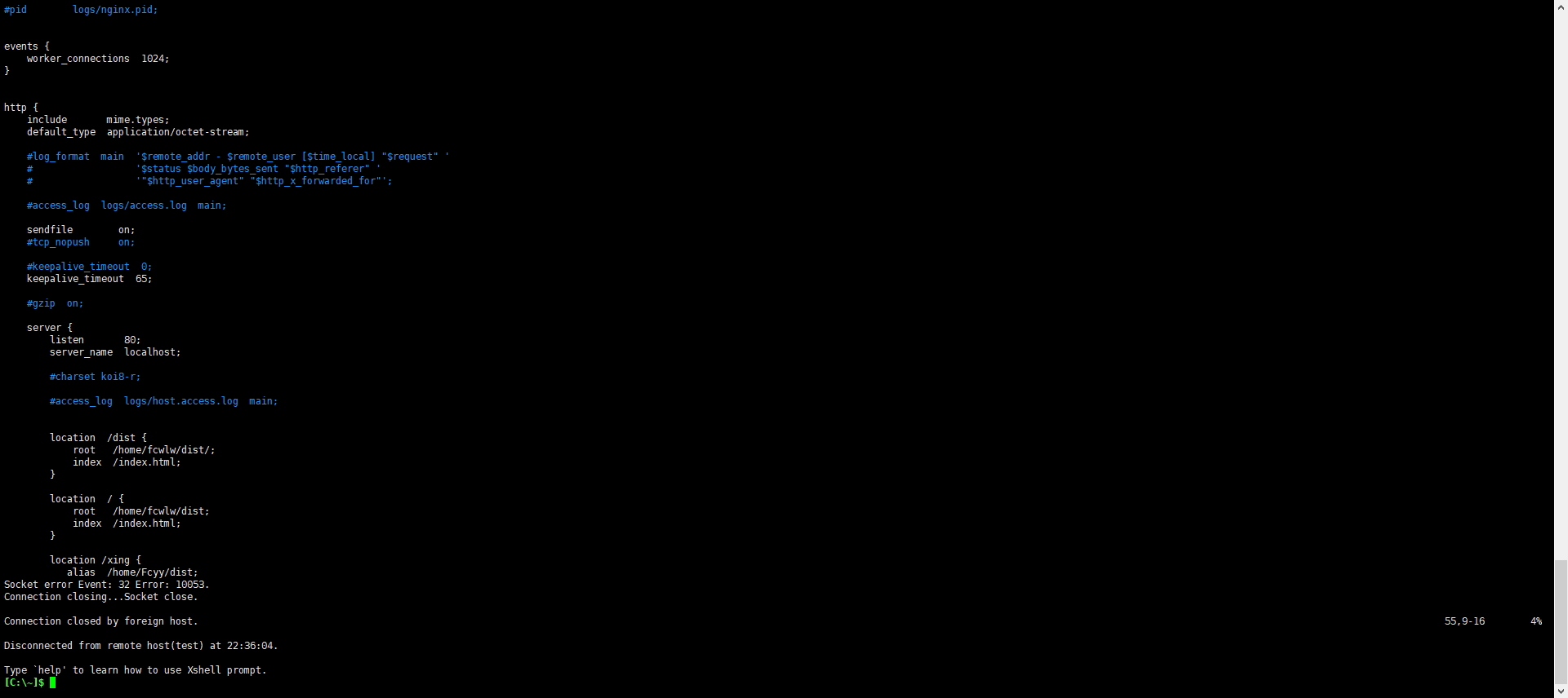 nginx配置文件如图所示,配置中的路径 “/”可以正常访问,