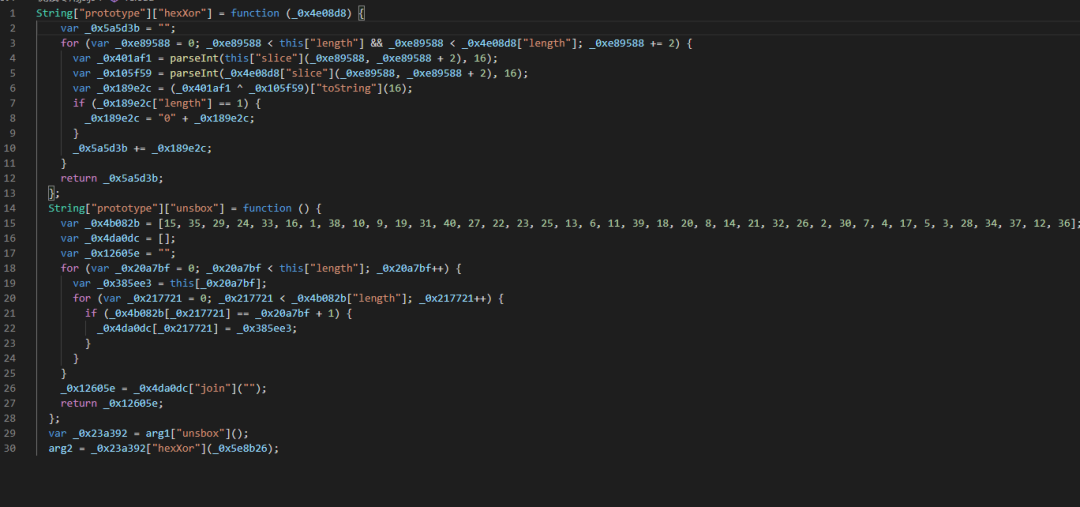 不懂的人会看不懂这种混淆代码,其实这是一种 ob 混淆,可以看到很多函数名变量名基本被混淆了的。