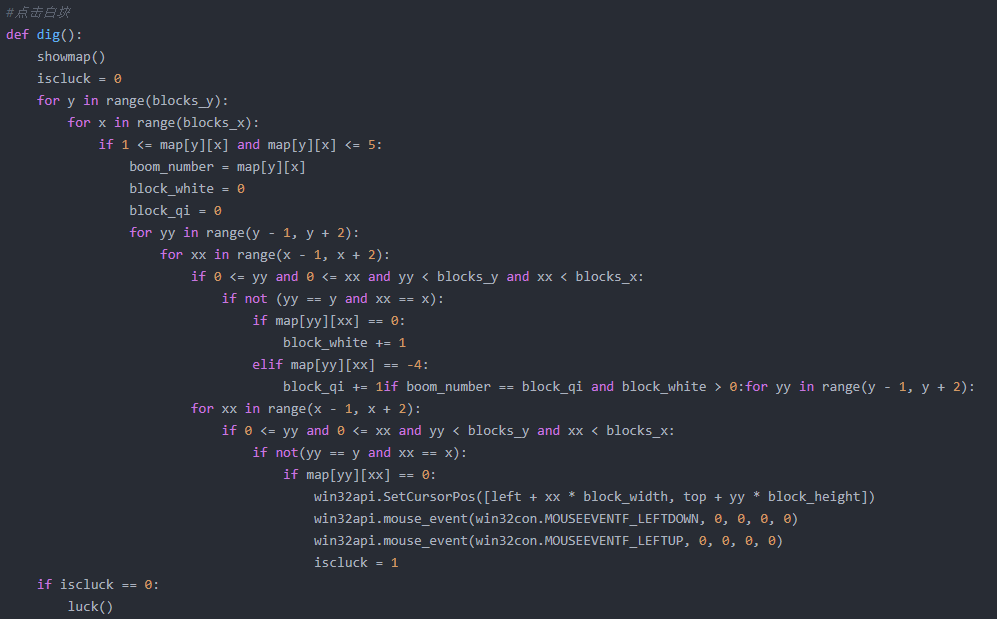 这个算法在初级和中级通过率都不错,但是在高级成功率惨不忍睹,主要是没有考虑逻辑组合以及白块是雷的概率问题,可以对这两个点进行改进,提高成功率
