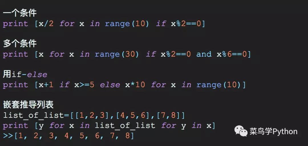 推导列表应该是我最喜欢的一种Pythonic方式,它的演变有很多手法,这几种都是非常常见的,多读几遍,背下来!