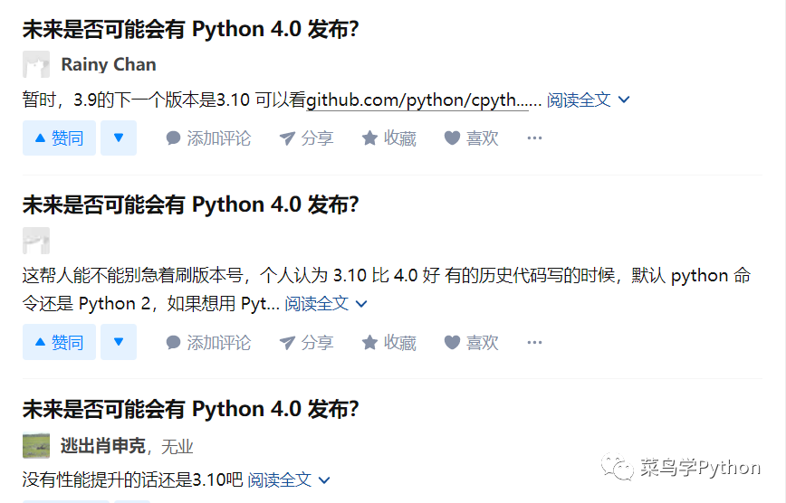 第二个回答则是说明了如果存在Python4的话,那么应该是类似于Python1向Python2的转变,而不像是Python2和Python3的转变。