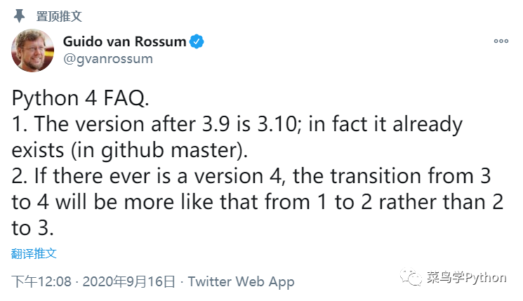 因此,菜鸟哥认为龟叔的话是指明了Python4能够兼容Python3。