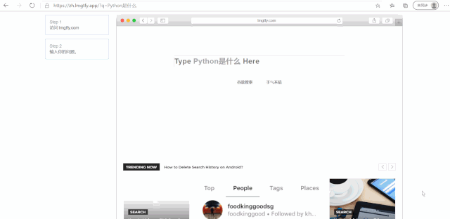 比如昨天有人问我,能不能告诉我Python是什么,我说可以。二话不说,啪就是一个链接甩上去:https://lmgtfy.app/?q=Python%E6%98%AF%E4%BB%80%E4%B9%88