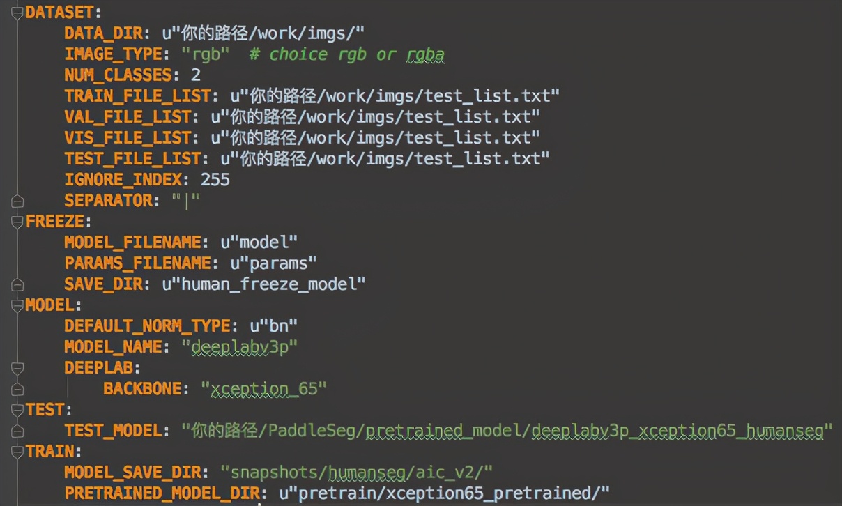 记得需要将humanseg.yaml文件中的路径信息,修改成你自己的路径。