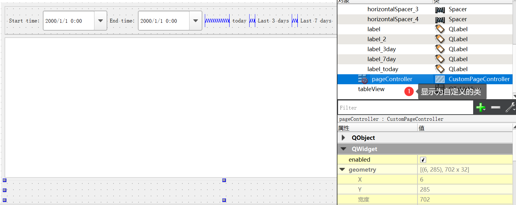 我通过拖拽QWidget作为父组件,在QWidget上添加了一些QLabel、QPushButton、QComboBox等实现了自定义的页面控制器组件。