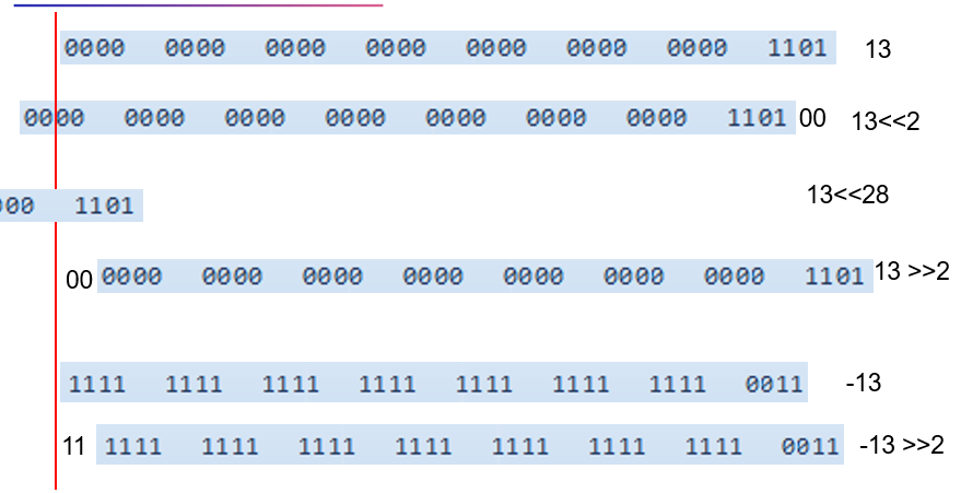 System.out.println("-13 >> 2 : " + (-13 >> 2));