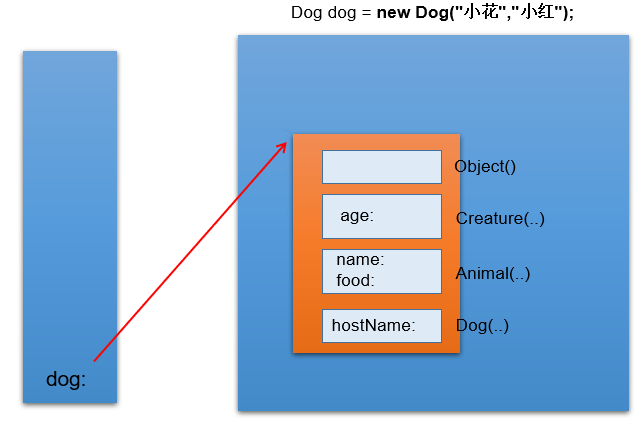 * 子类继承父类以后,当创建子类对象时,堆空间中除了会加载子类自己特有的属性之外,还会加载其所有的父类