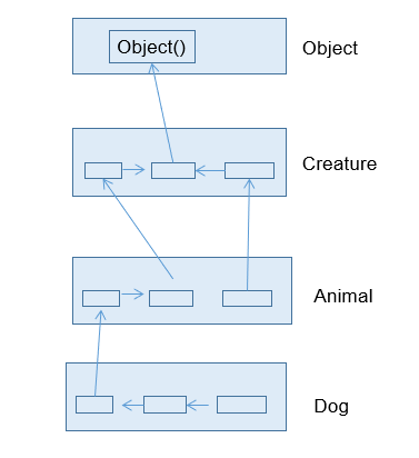 * 直到调用了java.lang.Object类的构造器。由于我们加载过子类的所有的父类的构造器,所有,我们在堆空间