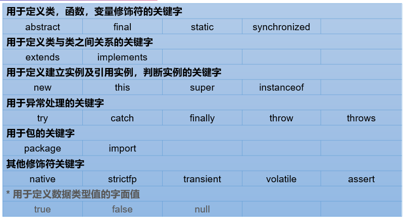 定义:被Java语言赋予了特殊含义,用做专门用途的字符串(单词)