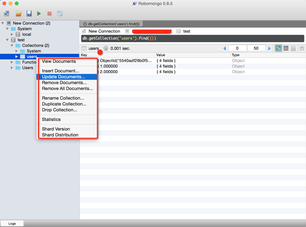 > db.users.update(
