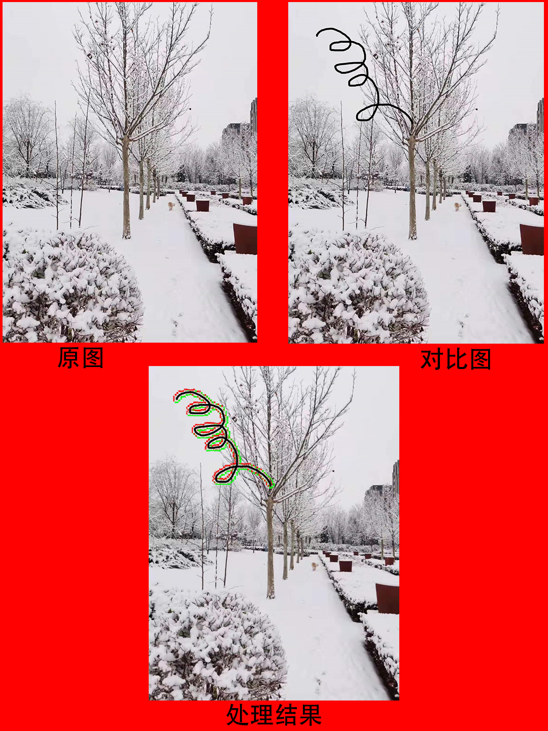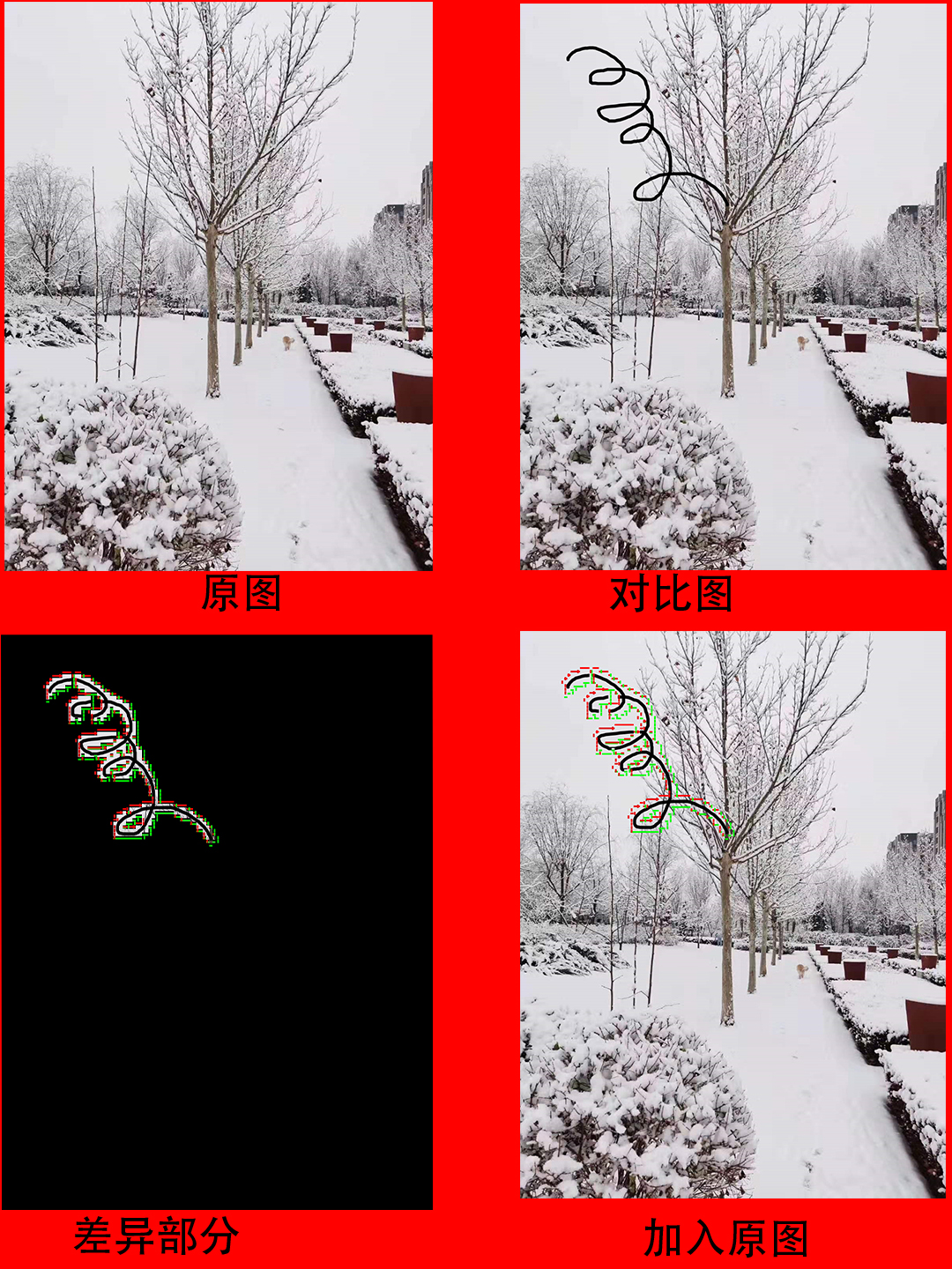 有点简单粗暴,直接逐个对比像素点。前提是要两张大小 轮廓 位置相同的图片。本来是设想对比相片是否相同,是否存在差异,固定架拍摄,因此轮廓相同。 后期考虑做图片位置重合匹配