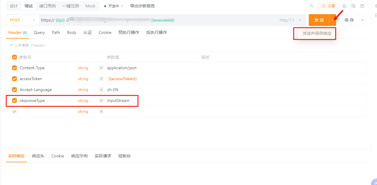 图片为Apipost,参数可以参照图片设置,{{ip}}这种方法为变量,可以直接替换为对应的值