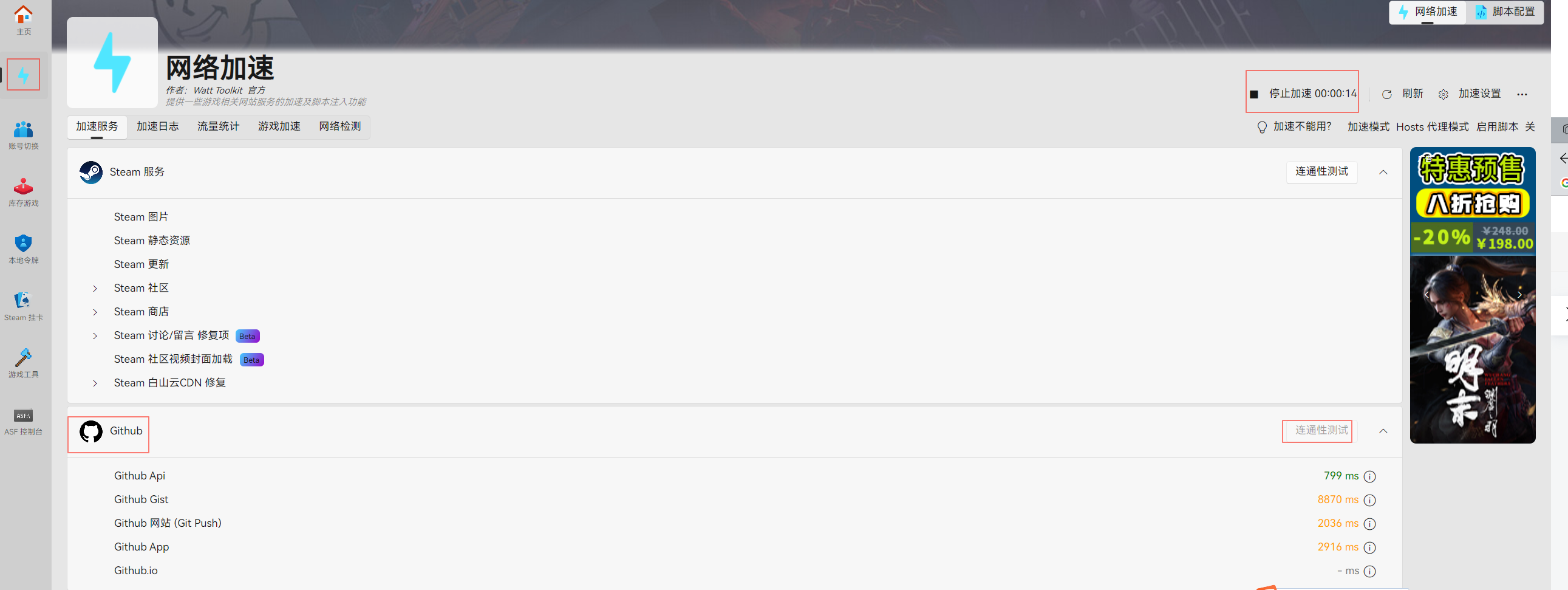 如果打不开github,那么可以下载一个瓦特工具箱用于加速,加速github是免费的