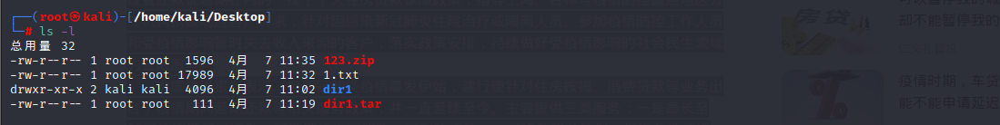 -rw-r--r-- 1 root root 1596 4月 7 11:35 123.zip
