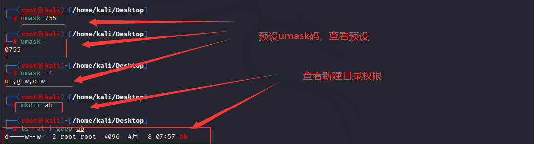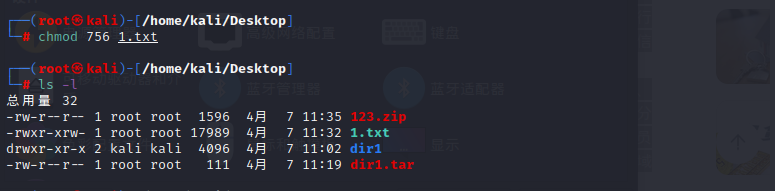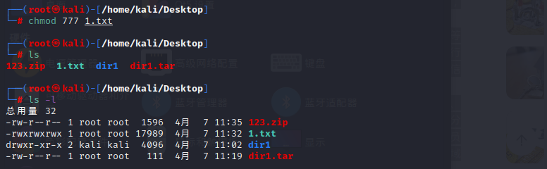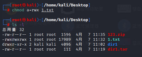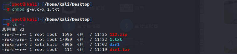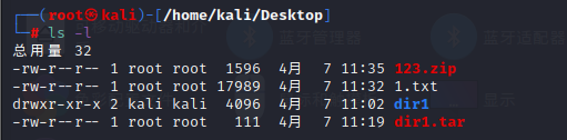 drwxr-xr-x 2 kali kali 4096 4月 7 11:02 dir1
