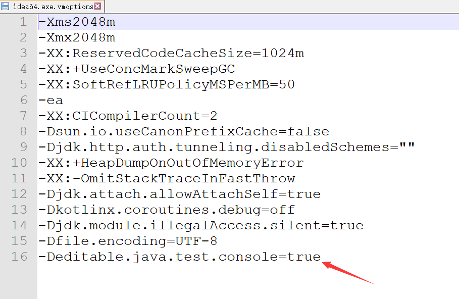 通过编辑工具添加-Deditable.java.test.console=true