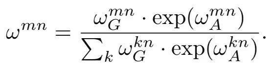 上面公式中的两个变量wG和wA分别表示目标的位置特征权重(geometric weight)和图像特征权重(appearance weight),后面通过如下公式分别得到。