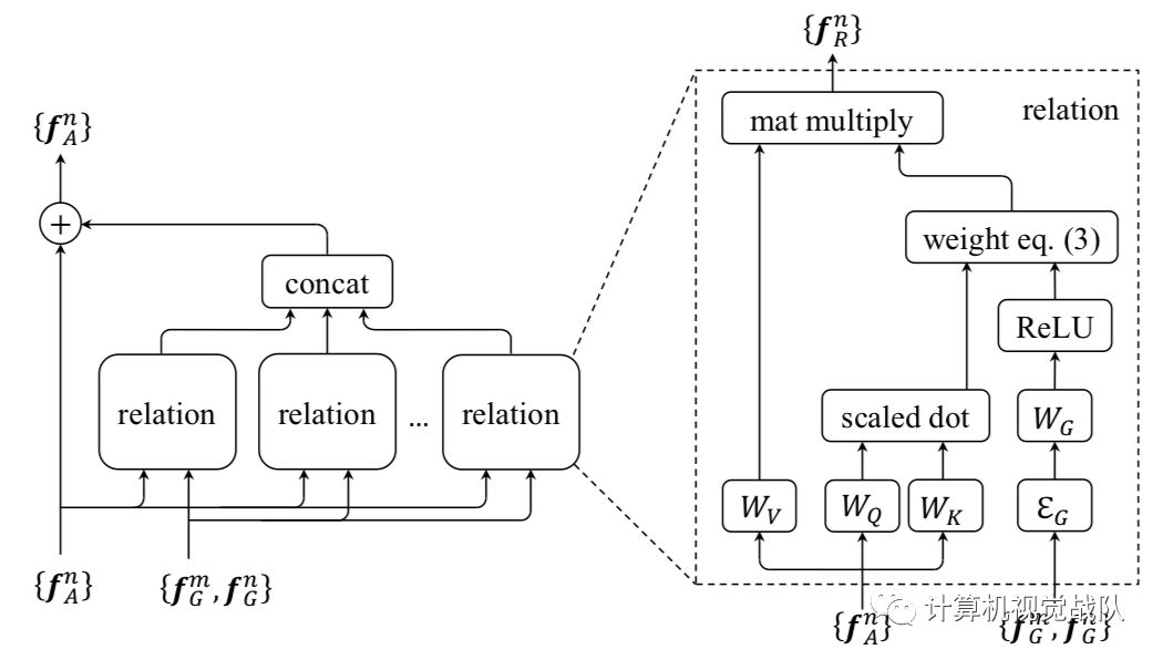 提出的Relation Module是对[“Attention Is All You Need”]中提出的“Scaled Dot-Product Attention”模块的改造,其主要作用是建立目标检测任务中不同目标之间的关系,以提高目标检测任务的准确率。