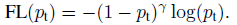 这种损失是对标准交叉熵的改进。这是通过改变它的形状来实现的,这样分配给分类良好的样本的损失就降低了。最终,这确保了没有类别不平衡。在这个损失函数中,交叉熵损失被缩放,随着对正确类的置信度的增加,缩放因子衰减为零。在训练时,比例因子会自动降低简单样本的权重,并聚焦于困难样本。